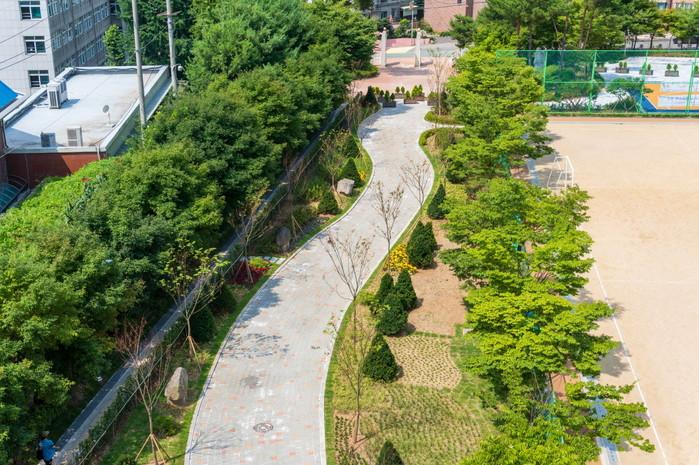 | ▲ 세종과학고등학교에 조성된 '숲길'. (사진제공=구로구청) |