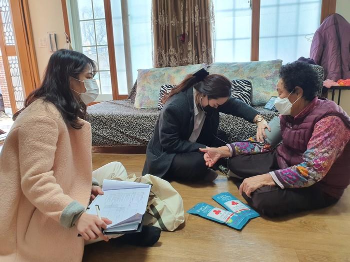 전남 보성군 보성읍과 벌교읍이 15일 복지사각지대 집중 발굴을 위해 생계·주거·의료 위기가구를 찾아 혈압·혈당 체크 봉사를 하고, 현장 방문조사를 실시했다. 사진은 읍 관계자가 벌교읍 평촌마을 노인 가구를 방문해 혈압·혈당 체크 봉사를 하고 있는 모습. (사진제공=보성군청)