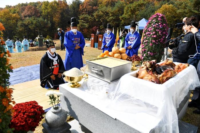 최근 경기 양평군 양동 의병묘역에서 양평을미의병기념사업회가 주최하고 양평문화원 양동분원이 주관하는 을미의병출진 125주년 맞이 '제24회 양평의병추모제'가 봉행됐다. 사진은 이날 행사에 참여한 정동균 군수(왼쪽)가 추모제 초헌관으로 제례를 진행하고 있는 모습. (사진제공=양평군청)