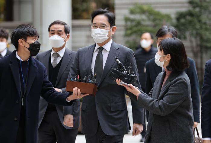 이재용 삼성전자 부회장이 9일 서초동 서울고등법원에서 열리는 '국정농단' 사건 파기환송심 재판에 출석하고 있다.