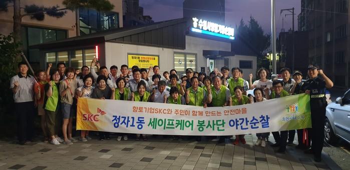 경기 수원시 장안구 정자1동은 지난 12일 세이프케어(Safe Care) 봉사단과 지역내 재개발구역 등의 방범 취약지역을 야간 순찰했다. 사진은 순찰에 참여한 이병규 장안구청장 및 관계자들이 기념촬영을 하는 모습.(사진제공=장안구청)
