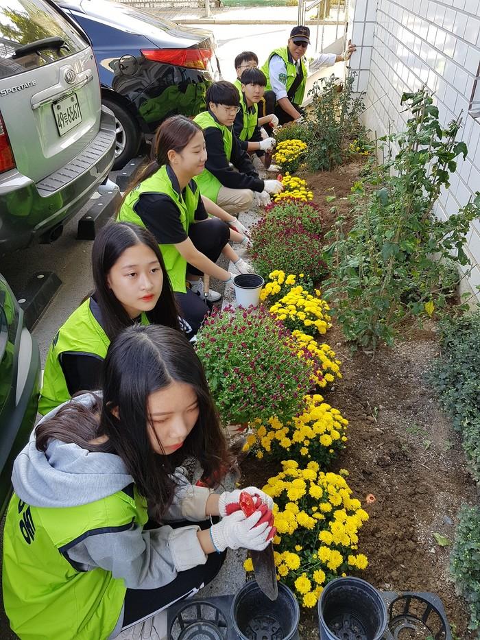 경기 수원시 권선구 세류3동 행정복지센터는 최근 시민들에게 쾌적한 거리환경을 제공하기 위해 마을정원 정비작업을 실시했다. 사진은 참여자들이 국화모종을 식재하고 있는 모습. (사진제공=권선구청)