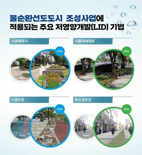 물순환 선도도시 조성사업은 오는 2022년까지 국비 70%를 포함한 총 사업비 295억원을 투입해 도시화로 불투수면이 넓게 분포된 상무지구 일원을 대상으로 다양한 저영향개발(LID) 기법을 적용해 빗물의 자연침투 등 물순환 기능을 회복시키고 강우유출량 및 비점오염원을 저감시키는 친환경 그린뉴딜 사업이다.