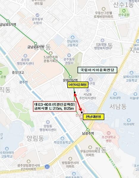 ▲ 광주광역시 문화전당 주변도로 확장 공사 위치도 / 광주광역시 제공 |