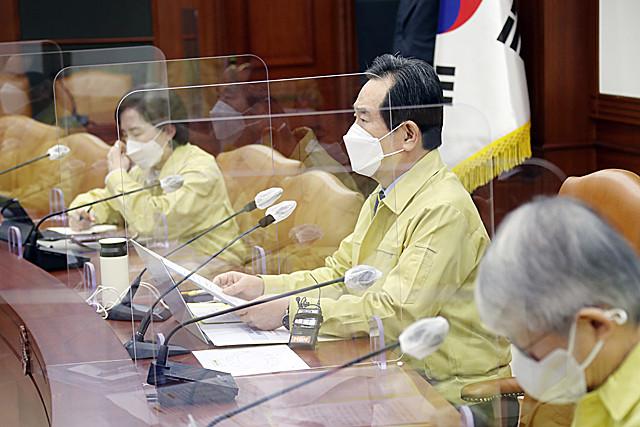 정세균 국무총리는 27일 신종 코로나바이러스 감염증(코로나19) 방역과 관련해 “이미 우리가 이행하고 있는 특별대책에는 거리두기 3단계보다 더 강한 방역조치도 포함돼 있다”고 밝혔다. 정 총리는 이날 정부서울청사에서 주재한 코로나19 중앙재난안전대책본부 회의에서 이같이 말한 데 이어 “다시 한번 국민 여러분의 지속적인 참여와 협조를 간곡히 요청드린다”고 호소했다.