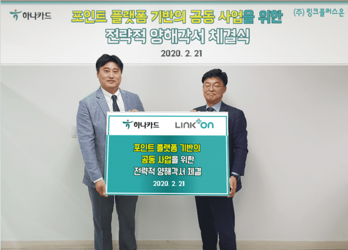 [시민일보 = 여영준 기자] 하나카드는 지난 21일 혁신 핀테크 스타트업 벤처기업인 링크플러스온과 포인트 플랫폼 기반의 공동사업을 위한 전략적 양해각서(MOU)를 체결했다고 27일 밝혔다.