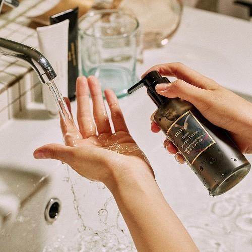 또한 4가지 자연유래 오일 성분(로즈힙열매오일, 카놀라오일, 스위트아몬드오일, 아보카도오일)을 함유해 손 세정 후에도 촉촉한 피부를 유지해 준다.