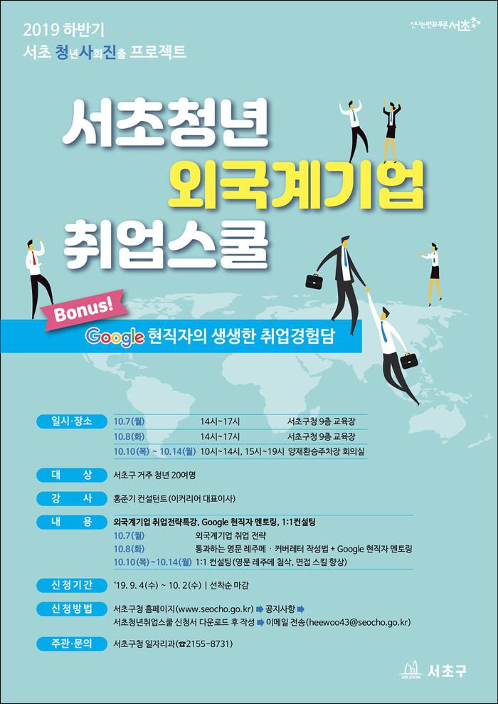 서초청년 외국계기업 취업스쿨은 청년들의 사회 진출을 돕기 위해 추진되는 것으로, 지난해에는 수료생 40명 가운데 13명이, 올해는 상반기 수료생 20명 중 4명이 취업했다.