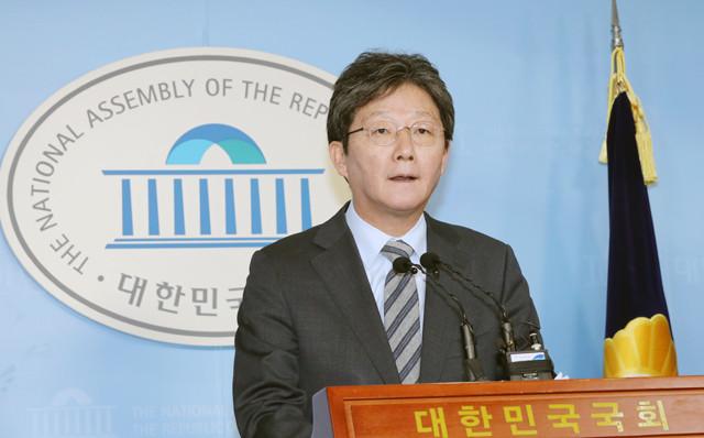 유승민 보수재건위원장이 9 오전 서울 여의도 국회 정론관에서 새보수당-자유한국당 신설합당 추진 총선 불출마 관련 기자회견을 하고 있다.