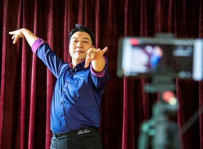 | ▲ 지난 8일 김영덕 청파동 자치회관 스포츠댄스 강사가 스마트폰으로 수업을 생중계하고 있다. (사진제공=용산구청) |