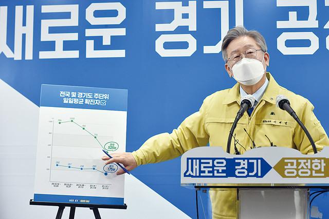 이재명 경기도지사가 20일 오전 경기 수원시 경기도청에서 브리핑을 열고 신종 코로나바이러스 감염증(코로나19) 여파로 인한 경기침체 구제책으로 제2차 경기도 재난기본소득 지급안을 밝히고 있다.