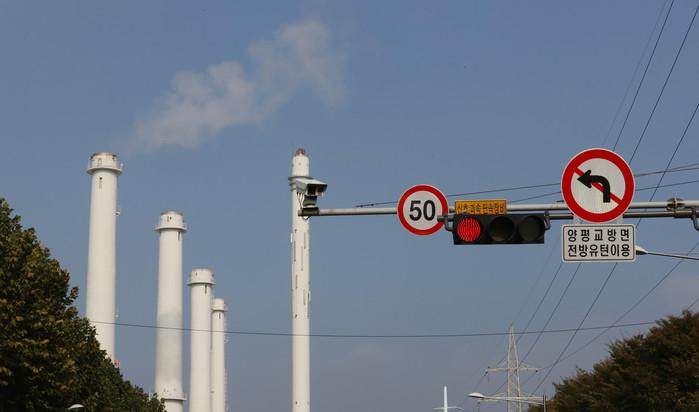 정부가 2050 탄소중립 시나리오와 2030 국가온실가스감축목표(NDC) 상향안을 확정한 27일 서울 양천구 목동 열병합발전소의 굴뚝 모습. 정부는 2030년까지 국가 온실가스를 2018년 대비 40% 감축하고, 신재생에너지 발전 비중은 2018년 6.2%에서 2030년 30.2%로 끌어올릴 계획이다.