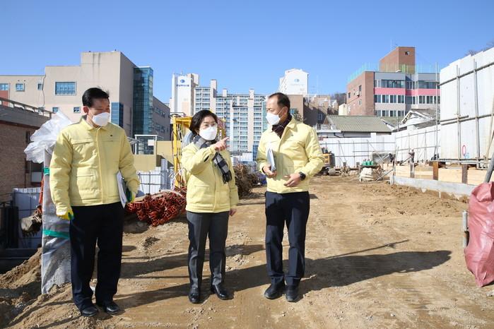 은평구는 8일 설 명절을 앞두고 취약시설 등에 대한 안전순찰을 실시했다. 사고위험이 있는 축대의 상태, 경사가 급해 폭설시 안전사고나 통행불편이 발생할 우려가 있는 도로의 상태를 점검했다. 사진은 김미경 구청장(가운데)과 관련 부서장들이 취약시설 현장점검을 하고 있는 모습. (사진제공=은평구청)