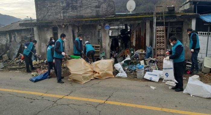 경기 연천군 신서면지역사회보장협의체는 지난 11월24일 신서면 도신4리에 거주하는 저소득 취약계층 가정을 방문해 주거환경 개선사업을 실시했다. 사진은 봉사자들이 집안 및 외부를 정리하고 있는 모습. (사진제공=연천군청)