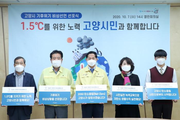 이에 기후위기 극복을 위한 온실가스 감축 정책을 수립, 지구 온도 상승 폭을 1.5℃ 이하로 억제하기 위한 제도적 기반과 기후관련 예산 마련, 학생과 시민 대상 기후와 환경교육 강화로 저탄소 생활양식 실천시민 양성, 시민의 기후위기 행동 확대를 위한 실천연대 결성과 시민 홍보‧교육활동 확대, 자원을 절약하고 재생 가능한 에너지 이용을 확대한다는 내용을 담아 “탄소중립을 선도하는 지속가능한 고양시를 만들겠다”는 의지를 표명했다.