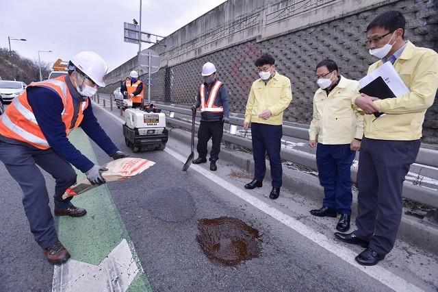 먼저 지난해 12월30일 내린 눈으로 발생한 파손도로 2810건에 대해 긴급보수를 진행했다.