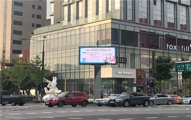 | ▲ 홍대입구역 사거리에 설치된 디지털 전자게시대. (사진제공=마포구청) |