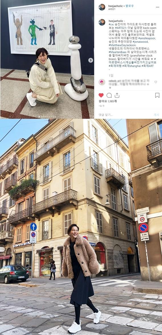 강희재는 인스타그램을 통해 니트 원피스에 화이트 스니커즈를 매치해 꾸안꾸 룩의 정수를 보여줬다.