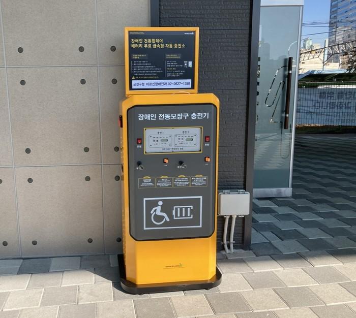 [시민일보 = 여영준 기자] 서울 금천구(구청장 유성훈)는 최근 전동 휠체어·스쿠터 등 전동 보장구를 이용하는 장애인이 충전 걱정 없이 편하게 지역내 시설을 이용할 수 있도록 급속충전기 4대를 추가 설치했다고 3일 밝혔다.