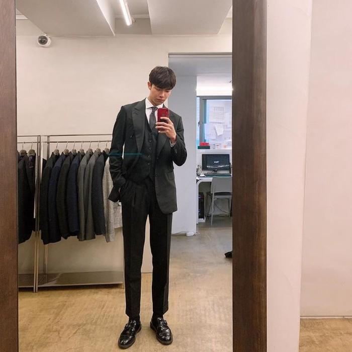 큰 키로 완성한 우월한 슈트핏이 시선을 사로잡는다.