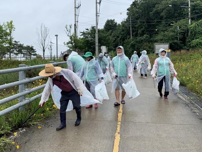 경기 여주시새마을회는 23일 깨끗한 남한강변 조성을 위해 환경정화활동을 실시했다. 이날 고광만 회장을 비롯해 박찬일 협의회장, 임복순 부녀회장 등 금사면, 산북면, 대신면, 오학동 남, 여 새마을지도자 32명은 이포보 일대 각종 생활 쓰레기를 수거했다. 사진은 참여자들이 쓰레기를 줍고 있는 모습. (사진제공=여주시청)
