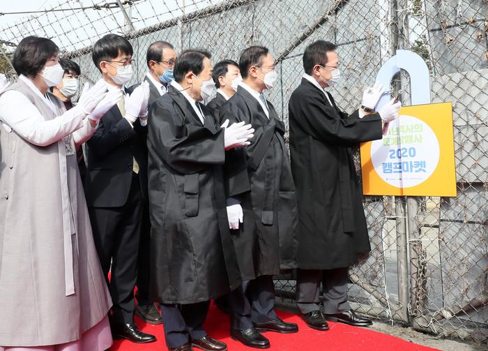 14일 오전 인천 부평구 미군기지 '캠프마켓'에서 열린 캠프마켓 개방행사에서 박남춘 인천시장이 캠프마켓 한 출입문을 열쇠로 개방하고 있다. 캠프마켓은 일본육군의 무기공장인 조병창으로 사용된 시기까지 포함해 81년간 일반인에게 개방되지 않다가 이날 일부 개방됐다.