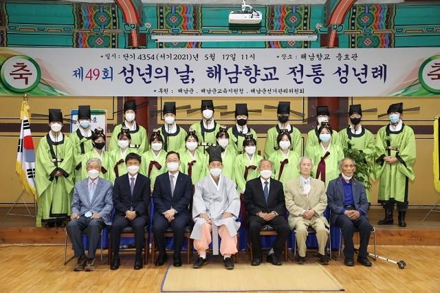 윤광천 전교와 김장균 유도회장을 비롯한 해남향교 원로유림 20여 명과 함께 명현관 해남군수, 장성모 해남교육지원청교육장 등이 참석해 성년을 축하하는 자리를 가졌다.