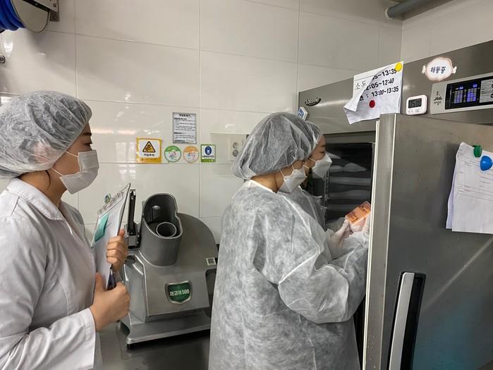 경기 의정부시는 최근 봄 신학기를 맞아 식중독이 주로 발생하는 학교·유치원 집단급식소 등을 대상으로 의정부교육지원청과 식중독 예방 합동점검을 실시해 유통기한·위생적 취급기준 및 시설기준 위반 여부 확인 등을 점검했다. 사진은 점검반이 냉장고 속 음식을 점검하고 있는 모습. (사진제공=의정부시청)