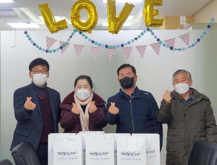 서울 서대문구 북가좌1동 마봄협의체가 연말연시를 맞아 최근 청소년 자녀를 둔 취약계층 가정 30곳에 치킨 쿠폰과 연하장을 준비해 전달했다. 사진은 마봄협의체 위원들이 손가락 하트 모양을 만들어 보이며 기념촬영을 하는 모습. (사진제공=서대문구청)