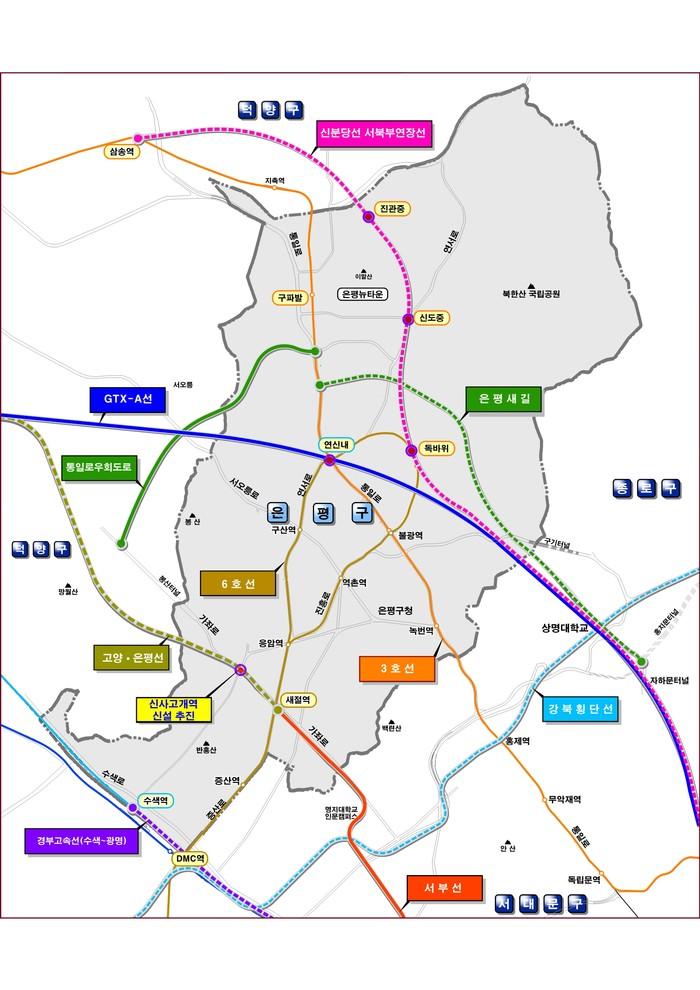 구는 서부경전철, GTX-A 노선에 이어 이번 제4차 국가철도망 구축계획에 포함된 은평구를 경유하는 철도망 3개 노선이 완공되면, 은평구는 물론 서울 서북부 지역 교통인프라가 크게 개선돼 강남·북 균형발전에도 기여할 것으로 내다보고 있다.