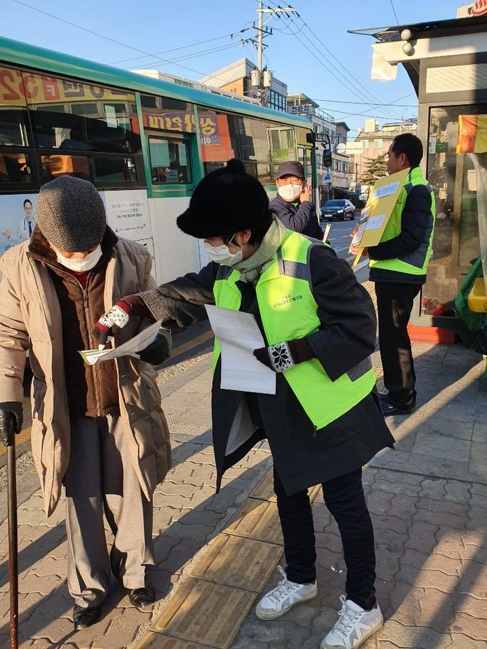 경기 남양주시 진접읍 지역사회보장협의체가 최근 진접농협 일대에서 겨울철 지역내 복지사각지대를 발굴하기 위한 홍보활동을 전개했다. 사진은 협의체 위원이 시민들에게 '어려운 이웃을 알려주세요'라는 문구가 쓰여 있는 리플릿을 나눠주는 모습. (사진제공=남양주시청)