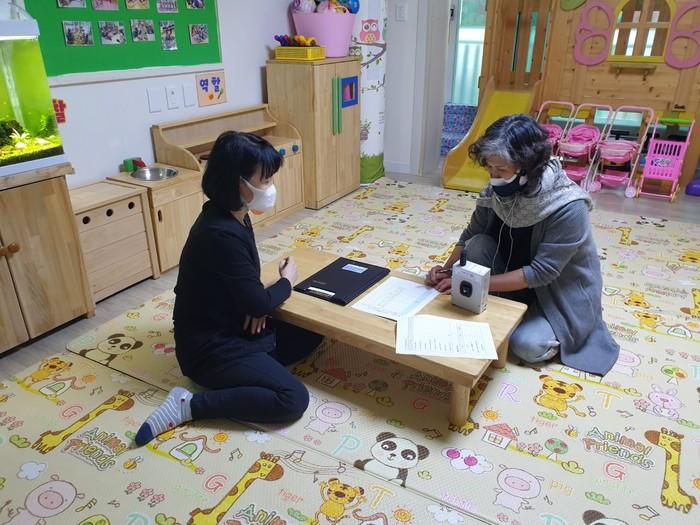 | ▲ 구 관계자가 지역내 한 어린이집에서 맞춤형 실내공기질 컨설팅을 하고 있다. (사진제공=성북구청) |