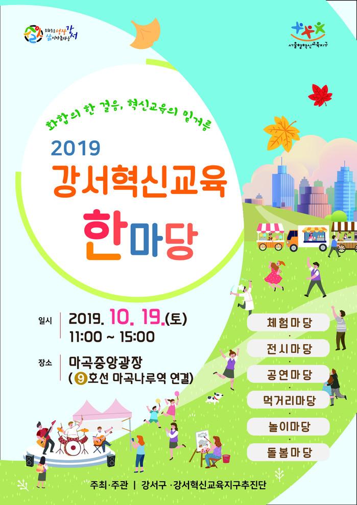 [시민일보 = 황혜빈 기자] 서울 강서구(구청장 노현송)가 오는 19일 오전 11시 마곡 중앙광장에서 민·관·학이 함께하는 ‘2019 혁신교육 한마당’을 개최한다고 밝혔다.