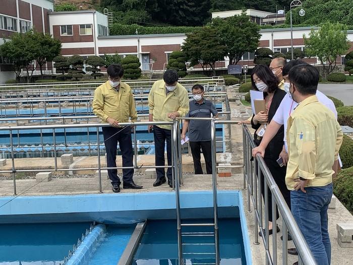 경기 동두천시 전진석 부시장은 최근 정수장을 방문해 수돗물 공급체계 및 관리 실태를 점검했다. 이번 점검은 최근 춘천시의 수돗물 단수 사태 및 탁수발생에 따라 시민들의 수돗물 이용에 대한 우려가 커지고 있어 사고를 미연에 방지하고자 진행됐다. 사진은 전 부시장(왼쪽 두 번째)이 관계자들과 함께 정수장 현장을 점검하고 있는 모습. (사진제공=동두천시청)