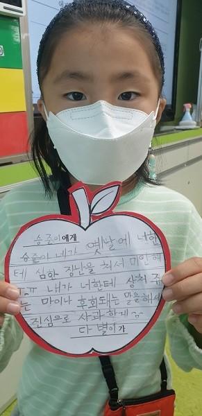 | ▲ 2학기 인성교육 실천 주간 1-3 사과편지쓰기- 클로즈업샷 / 해남동초등학교 제공 |