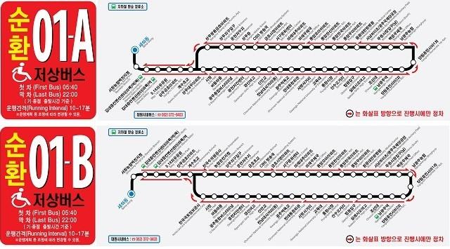 이에 광주시는 계수초교를 기점으로 시청, 버스터미널 방향으로 순환하는 01번은 순환01-A번으로, 계수초교를 기점으로 운천저수지, 마재우체국 방향으로 순환하는 01번은 순환01-B번으로 구분해 운행한다.