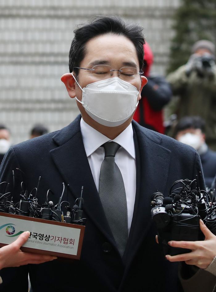 이재용 삼성전자 부회장이 18일 오후 서울 서초구 서울고등법원에서 열린 '국정농단' 사건 파기환송심 선고 공판에 출석하며 법정으로 향하고 있다. 서울고법 형사1부는 이날 뇌물공여 등 혐의로 기소된 이 부회장에게 징역 2년 6개월을 선고했다. 불구속 상태에서 재판을 받던 이 부회장은 이날 영장이 발부돼 법정에서 구속됐다.