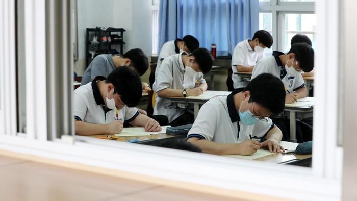 대학수학능력시험 모의평가가 시행된 18일 오전 서울 여의도고등학교에서 학생들이 시험을 준비하고 있다.