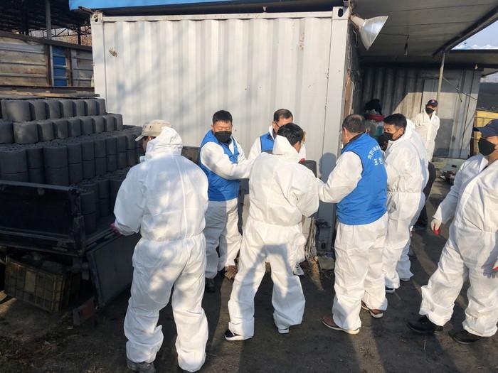 경기 포천시 공직자 희망나눔봉사동아리와 한내테니스클럽이 최근 무한돌봄희망복지센터와 일동면행정복지센터 맞춤형복지팀 사례관리 대상 난방취약 5개 가정에 총 2000장의 연탄을 전달했다. 사진은 관계자들이 연탄을 나르고 있는 모습. (사진제공=포천시청)