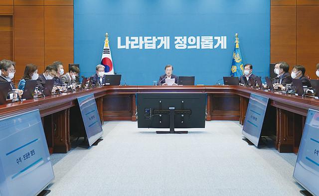 문재인 대통령은 15일 북한이 최근 군사도발을 시사하며 남북관계 긴장감이 고조된 것에 대해 “나와 김정은 북한 국무위원장이 8000만 겨레 앞에서 했던 한반도 평화의 약속을 뒤로 돌릴 수는 없다”고 말했다. 문 대통령은 이날 청와대에서 주재한 수석·보좌관회의 모두발언에서 “남북이 함께 가야 할 방향은 명확하다. 오랜 단절과 전쟁 위기까지 어렵게 넘어선 지금의 남북관계를 멈춰서는 안된다”며 이같이 밝혔다.