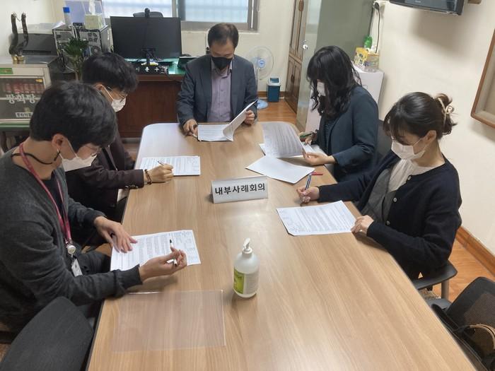 경기 동두천시 중앙동 행정복지센터는 최근 내부사례회의를 개최해 갑작스러운 건강 악화와 생활고로 위기상황에 놓인 가구를 통합사례관리 대상자로 선정하고 읍·면·동 사례관리 사업비와 착한식당 식사 연계를 검토하기로 했다. 사진은 이날 회의가 진행되고 있는 모습. (사진제공=동두천시청)