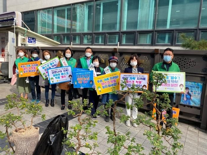 경기 여주시새마을회는 지난 13일 한글시장을 중심으로 마스크 착용 생활운동 캠페인을 전개했다. 새마을회는 마스크 착용 의무화 내용이 담긴 현수막과 피켓을 들고 마스크와 손 소독제를 나눠주며 시민들에게 올바른 마스크 착용법 등을 홍보했다. 사진은 피켓을 들고 캠페인을 하고 있는 모습. (사진제공=여주시청)