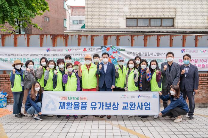 강동 더(The) 드림은 '보태어'라는 의미의 '더'와 '드리다'의 '드림'을 합친 뜻으로 구민들의 자발적인 참여와 재활용품 수거율을 높이기 위해 유가보상을 하고 있다.