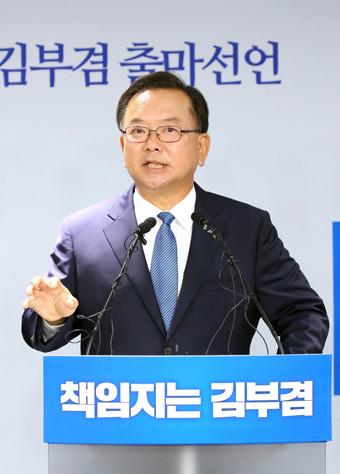 더불어민주당 당 대표에 도전하는 김부겸 전 의원이 9일 서울 여의도 당사에서 당 대표 출마를 선언하고 있다.
