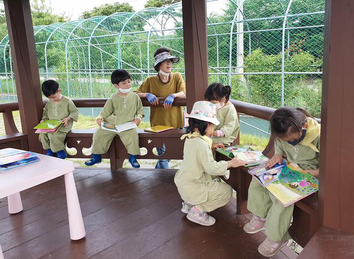 충남 서산시 동문1동에서 추진하고 있는 비대면 ‘책 냉장고’와 ‘책 나눔장터’ 사업이 주민들로부터 큰 호응을 얻고 있다. 책 냉장고는 주민들이 기증한 책을 자유롭게 나누는 사업이며, 책 나눔장터’는 동문1동 행정복지센터 민원실에서 상시 운영하고 있다. 사진은 최근 온석저수지 공원에 위치한 책 냉장고에서 아이들이 책을 읽는 모습. (사진제공=서산시청)