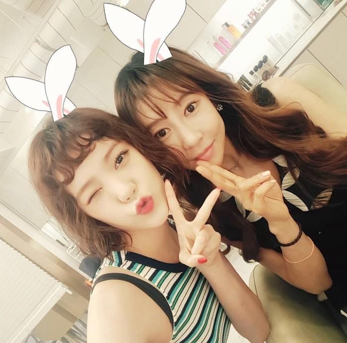 공개된 사진 속 채민서는 리지와 함께 브이를 그리고 카메라를 쳐다보고 있는 모습이 담겨 있다.