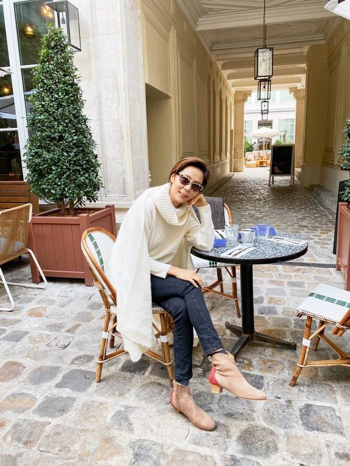 특히 그는 페미닌한 원피스와 스니커즈를 믹스 매치해 따라하고 싶은 슈즈 스타일링을 선보였다.