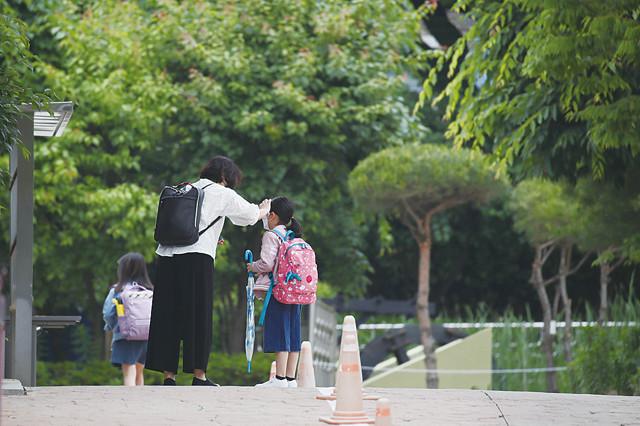2일 오전 서울의 한 초등학교에서 어린이가 교내로 들어가고 있다. 수도권을 중심으로 신종 코로나바이러스 감염증(코로나19)의 산발적인 발생이 잇따르는 가운데 3일부터 초·중·고 학생 178만명이 추가로 등굣길에 오른다. 고1·중2·초3∼4학년들의 등교 수업이 시작된다.