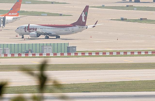 코로나19 사태로 막혔던 인천∼우한(武漢) 하늘길이 8개월 만에 다시 열린다. 15일 국토교통부에 따르면 국토부는 전날 티웨이항공의 인천∼우한 노선에 대한 운항 허가 결정을 내렸다. 사진은 이날 인천국제공항 계류장에 서 있는 티웨이항공 여객기 모습.