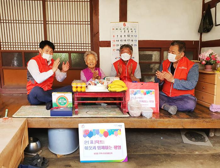 충남 서산시 성연면 지역사회보장협의체는 지난 16일 지역내 생일을 맞은 저소득 홀몸노인을 대상으로 ‘온(溫)택트, 이웃과 함께하는 생일’ 사업을 추진했다. 사진은 협의체 위원들이 생일을 맞은 홀몸노인 가구를 찾아가 생일상을 차리고 축하를 해주고 있는 모습. (사진제공=서산시청)